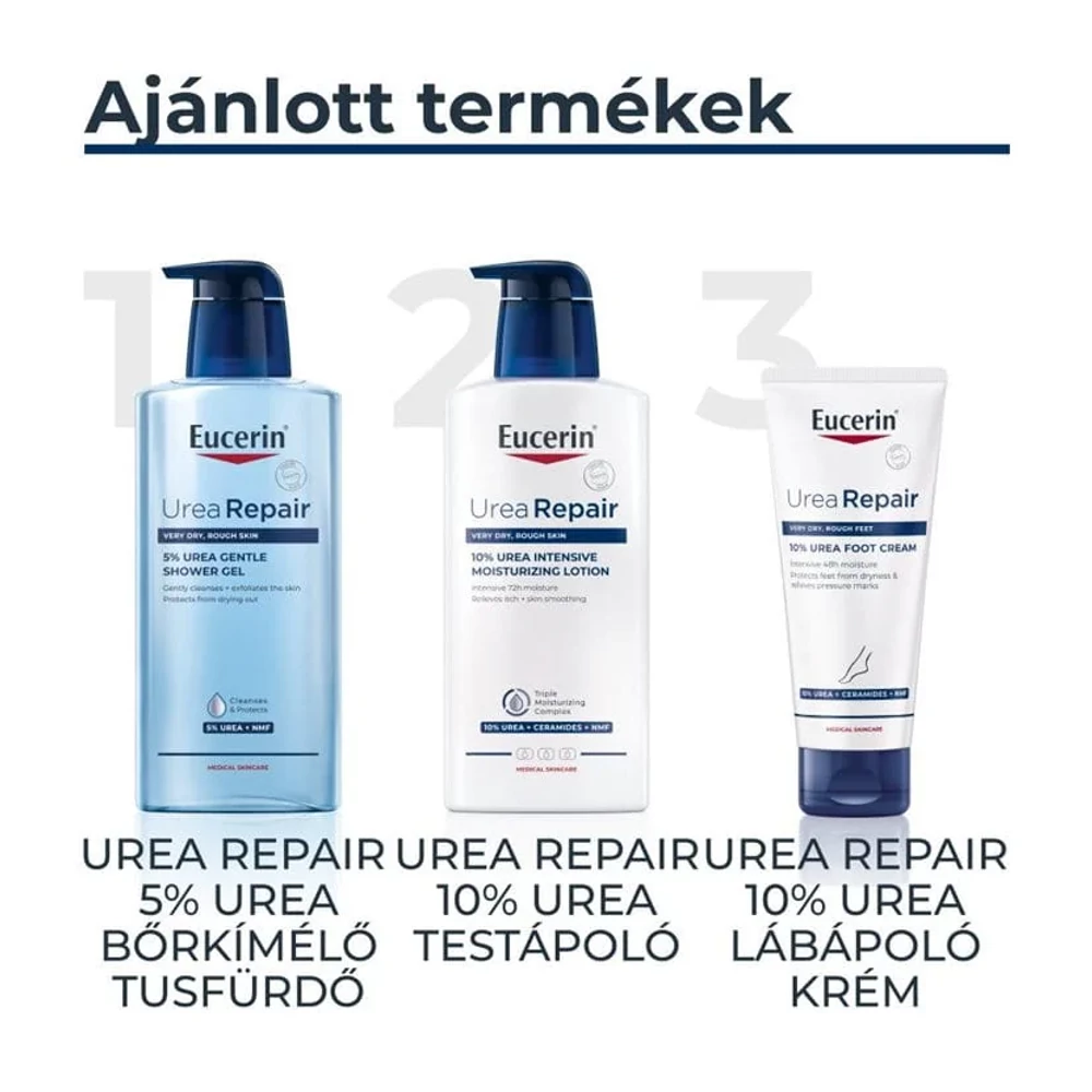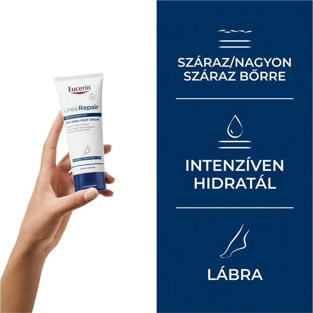 Az Eucerin® UreaRepair 10% Urea lábápoló krém a száraz vagy rendkívül száraz lábfej bőrének azt az intenzív ápolást nyújtja, amire szüksége van, hogy puhává és bársonyossá váljon. Segít csökkenteni a bőrkeményedést és berepedezést.