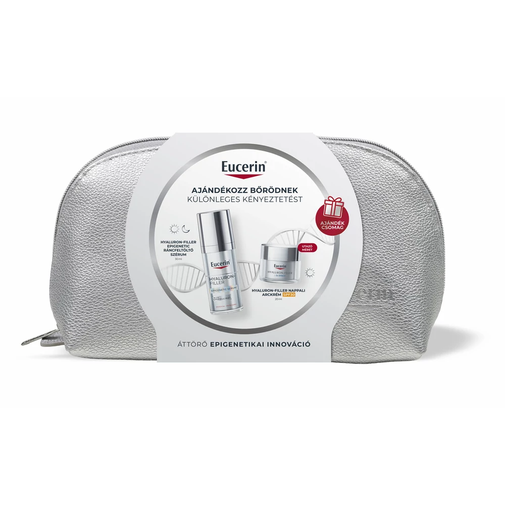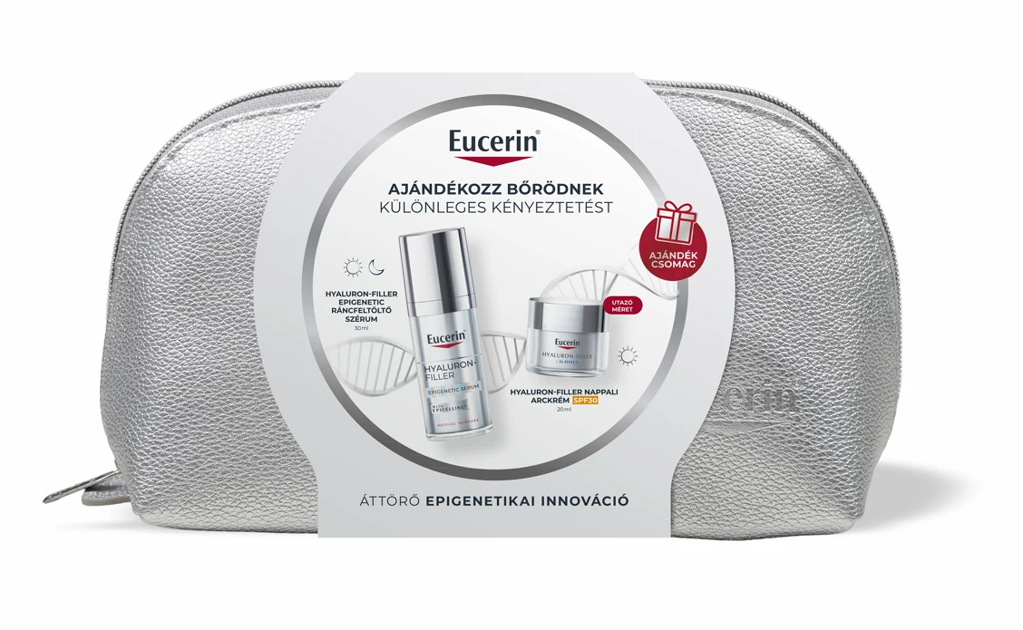 Az életmód és környezeti tényezők megváltoztathatják a bőr epigenetikai mintáit. Ez azt jelenti, hogy a fiatalságért felelős gének deaktiválódnak, ami öregedéshez vezethet. A szabadalmaztatott Age Clock Technológián alapuló Eucerin Hyaluron-Filler Epigenetic ráncfeltöltő szérum a természetes babérbogyóból kinyert Epicelline® hatóanyaggal újra aktiválhatja a bőr fiatalító géneket a gyökerénél, így láthatóan visszafordíthatja a bőr öregedésének jeleit. Klinikai és bőrgyógyászati vizsgálatok igazolják a termék kiváló bőrtolerabilitását és hatékonyságát. Minden bőrtípusra alkalmazható termék.
